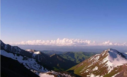 冰川雪海:是博格達(dá)峰北坡游覽區(qū)中雪線(海拔3800米左右)以上的冰川雪海自然景觀區(qū)。這里是天山山脈發(fā)生雪崩最頻繁的地區(qū),雪崩的密度、路徑、落差都很大,最易發(fā)生雪崩的時(shí)間是夏季降雪時(shí)及降雪后,這給登山者帶來許多麻煩。此區(qū)常年的積雪又將底層的積雪壓變成冰,形成冰川。冰川的進(jìn)退是隨氣候的冷暖形成而變山地被冰川覆蓋,最大的冰川長達(dá)27公里,巨大的冰川順山谷下移,所到之處留下大量痕跡,這就是前述的高山礫漠自然景觀區(qū)的古冰川遺跡。