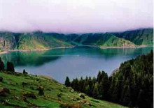 三江河洪水:即“南湖黃龍”,三江河水從大天池南段入湖處,由于博格達(dá)山區(qū)夏季降水較多,常暴雨盆潑,三工河上游集水面積有168平方公里,河水每當(dāng)大雨洶涌北瀉,從天池北南望。