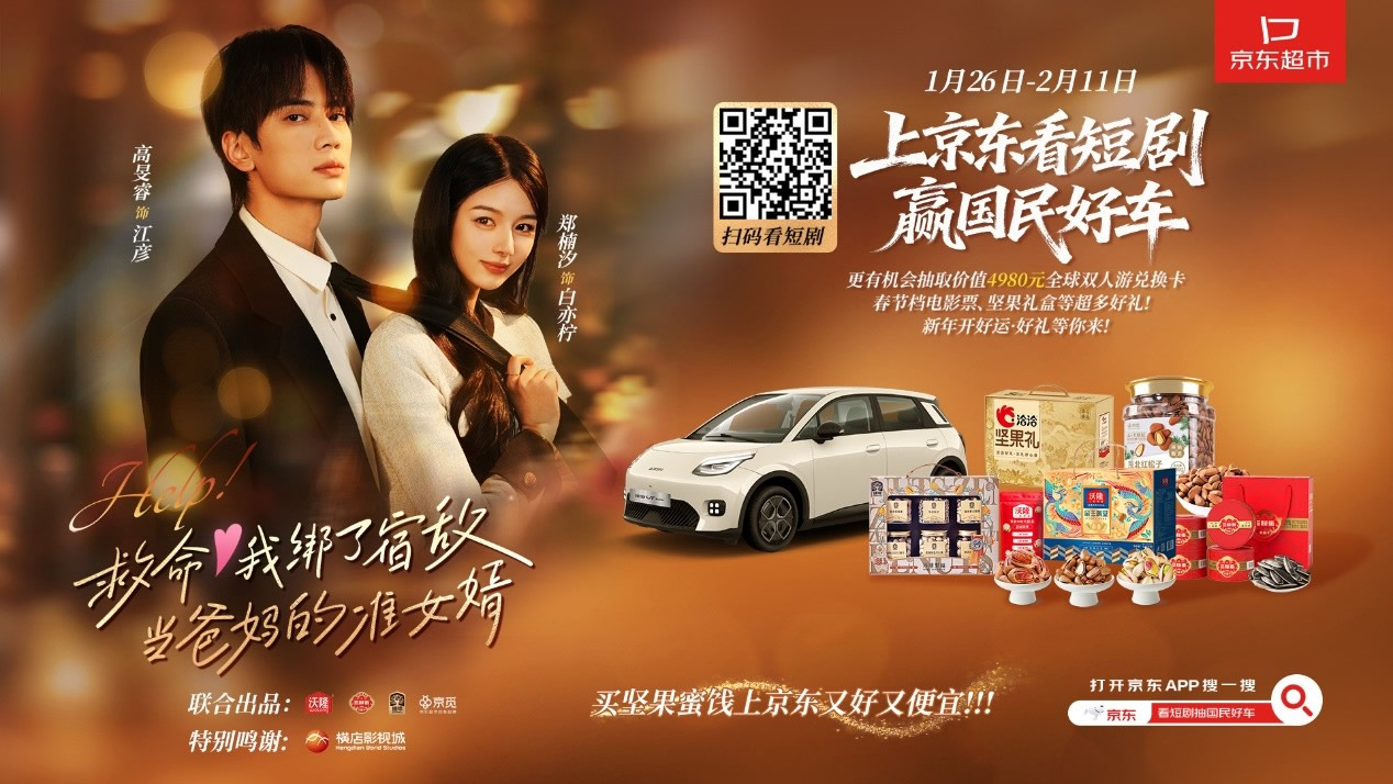 其中,京東旅行順應(yīng)當(dāng)下短劇熱門趨勢,與京東超市堅果蜜餞品類攜手創(chuàng)新內(nèi)容營銷合作模式,聯(lián)合橫店影視城和沃隆、三胖蛋、臻味、京覓等堅果品牌,聚焦春節(jié)團(tuán)圓、父母催婚等節(jié)點話題打造的定制輕喜微短劇,在呈現(xiàn)闔家歡樂的劇情中,自然融入京東堅果品類心智,并聯(lián)合站內(nèi)看短劇贏國民好車的互動活動,為品類品牌的年貨節(jié)營銷打開新的思路,實現(xiàn)曝光-心智-引流-轉(zhuǎn)化的營銷閉環(huán)。
