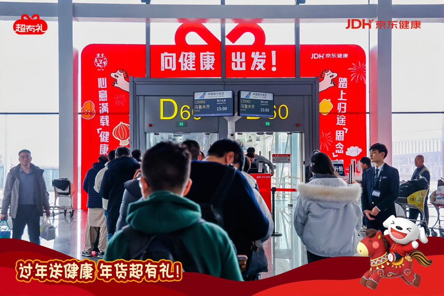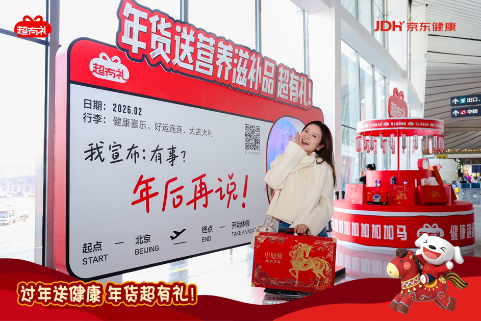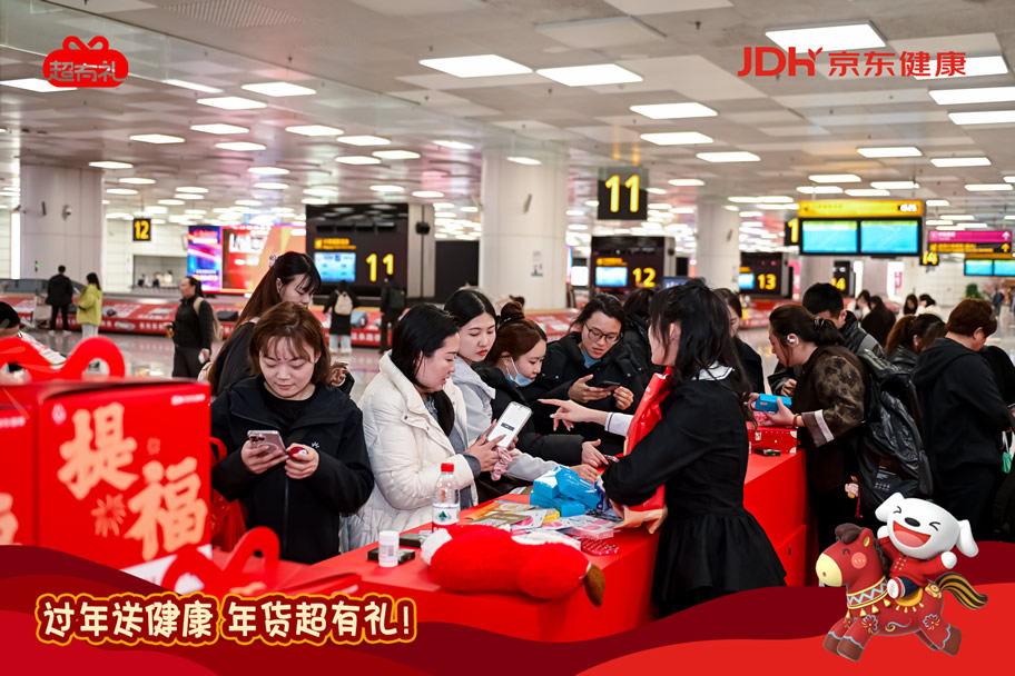 京東旅行攜手京東健康“超有禮”IP在此次年貨節(jié)中,通過全鏈路航空場景營銷實現(xiàn)了品牌與用戶的深度互動,圍繞“機場快閃—主題登機口—主題航班—行李傳送帶驚喜事件”構(gòu)建貫穿出行始終的品牌體驗閉環(huán),以創(chuàng)新的事件組合與場景融入,將健康關(guān)懷自然嵌入用戶春運旅程。這一策略高度適配春節(jié)出行場景,不僅精準(zhǔn)觸達(dá)返鄉(xiāng)、探親、商旅等多類用戶群體,更通過具象化的健康禮品派發(fā)、溫情驚喜體驗等,持續(xù)強化“春節(jié)送健康禮”的消費心智,成功將健康禮贈塑造為新年問候的情感載體與品質(zhì)之選。