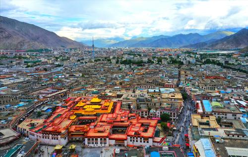 大昭寺,又名“祖拉康”、“覺康”(藏語意為佛殿),位于拉薩老城區(qū)中心,是一座藏傳佛教寺院,是藏王松贊干布建造,拉薩之所以有“圣地”之譽,與這座佛像有關(guān)。寺廟最初稱“惹薩”,后來惹薩又成為這座城市的名稱,并演化成當下的“拉薩”。大昭寺建成后,經(jīng)過元、明、清歷朝屢加修改擴建,才形成了現(xiàn)今的規(guī)模。