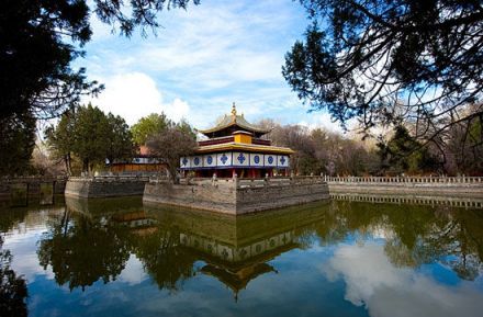 八世達(dá)賴在此基礎(chǔ)上擴(kuò)建了恰白康(閱覽室)、康松司倫(威鎮(zhèn)三界閣)、曲然(講經(jīng)院),把舊有的水塘開(kāi)挖成湖,按漢式亭臺(tái)樓閣的建筑風(fēng)格,在湖心建了龍王廟和措吉頗章宮(湖心宮),兩側(cè)架設(shè)了石橋。