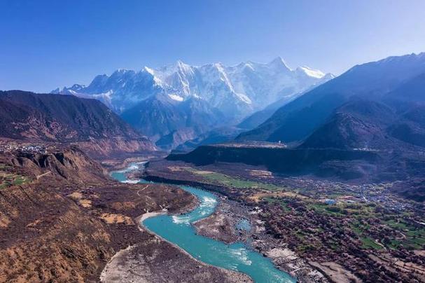 這個(gè)大峽谷北起米林縣派鎮(zhèn)的大渡卡村(海拔2880米)。南方可以看到南迦巴瓦峰和隔江對(duì)峙的加拉白壘峰。