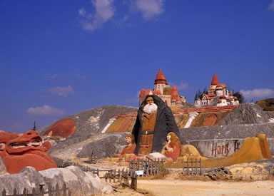 “三十六計(jì)”浮雕洞穴,一計(jì)一穴除了能欣賞色澤分明的多彩沙層之外,還可以其直觀的形象讓游客領(lǐng)略到我國古代謀略攻戰(zhàn)的軍事淵源。洞穴度假村冬暖夏涼,別有情趣。