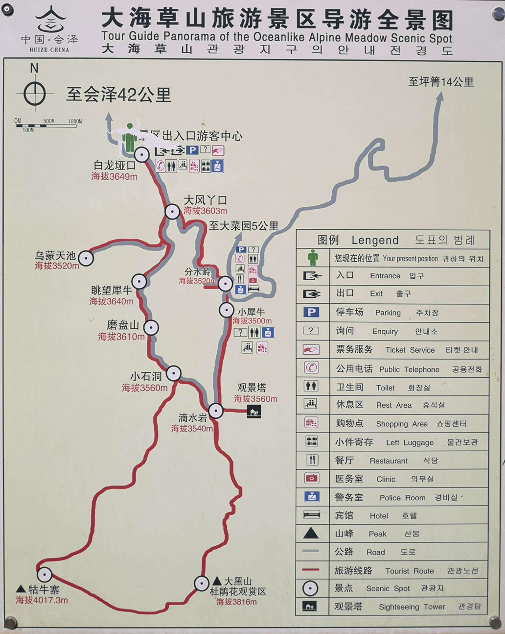 會(huì)澤大海草山位于云南省曲靖市會(huì)澤縣大海鄉(xiāng)東南部,屬烏蒙山系主峰段,海拔在3570--4017米之間,其最高峰牯牛寨(即絳云弄山)海拔4017.3米,是烏蒙山系的最高峰,唐朝時(shí)南詔國(guó)王封為東岳。