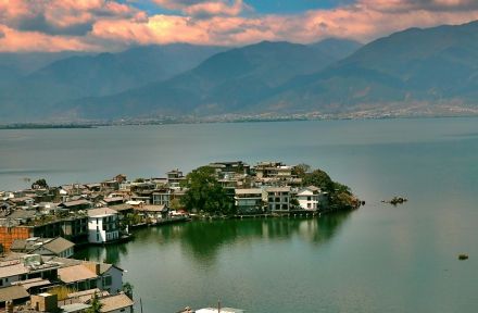 該島四面環(huán)水,東靠著名佛教圣地雞足山,北接石寶山,南連大理,西對蒼山洱海,因占據著得天獨厚的旅游資源,故素有“大理風光在蒼洱 ,蒼洱風光在雙廊”之美譽。