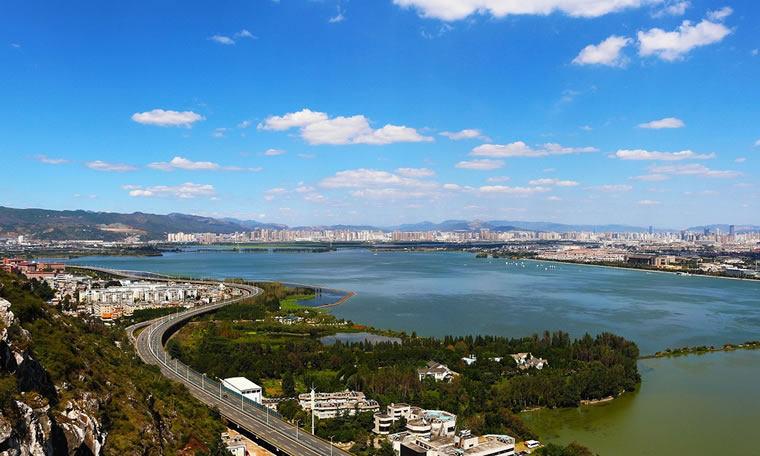 位置境域 西山區(qū)位于滇池西北岸,昆明市西部。東臨滇池,與官渡區(qū)、呈貢區(qū)隔水相望,與五華區(qū)土地相連,東北隅與官渡區(qū)、嵩明縣毗鄰。南接晉寧縣,西靠安寧、祿豐,北同富民縣接壤。東西寬36.8千米,南北長72千米,總面積881平方千米。