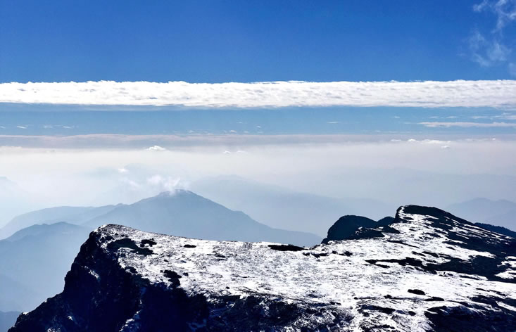 毛澤東同志“烏蒙磅礴走泥丸”的詩詞就是對烏蒙山的最好寫照。大牯牛寨山是烏蒙山脈最高峰,氣勢逼人,此山距東川城區(qū)水平距離僅9千米,海拔高差卻達2767.3米。山上巖石大都為堅硬的石灰?guī)r,呈褐色。