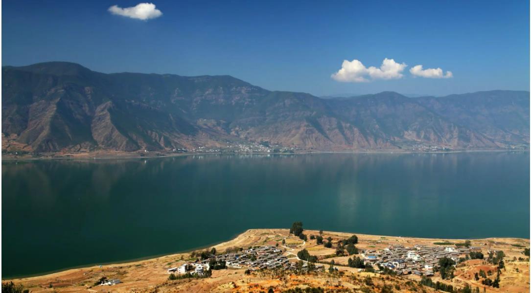 程海湖,云南省永勝縣境內(nèi)金沙江流域湖泊。位于云南省永勝縣中部,一般面積78.8平方千米,一般容積27億立方米。程海位于程海斷裂帶形成的盆地底部,古為程河,為金沙江支流,后陷落為湖。湖水主要來自盆地周邊山泉。湖水原經(jīng)南部湖口,經(jīng)程河(海河、期納河)下游匯入金沙江。近代由于水文氣候變化湖水一般不再外泄,成為內(nèi)陸湖。