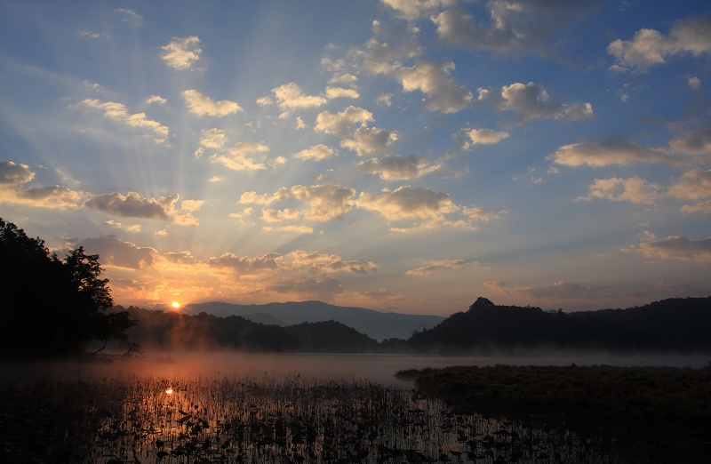 勐梭龍?zhí)稙樘烊坏,湖面海?170米,近似蘑菇狀,面積580畝,蓄水量500萬立方米,最深37米,平均深度11.5米,年平均水溫23度。