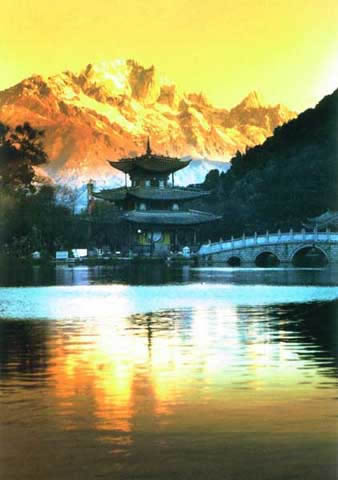玉龍雪山隨著時(shí)令和明暗的交替,景觀也變幻無(wú)常。時(shí)而云蒸霧涌,玉龍乍隱乍現(xiàn),時(shí)而碧天如水,萬(wàn)里無(wú)云,群峰像被玉液清洗過一樣,晶瑩的雪光耀目晃眼,具有"白雪無(wú)古今,乾坤失曉昏"的光輝;東方初曉,晨曦罩峰頂,多彩的霞光映染雪峰,白雪呈緋紅狀與彩霞掩映閃爍;傍晚,斜輝把雪峰染抹得像披上紅紗,云朵帶