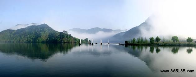 仙宮湖:崛立在云和縣緊水灘的浙南第一壩緊水灘水電站大壩,將滔滔甌江攔腰鎖住。在水電站建成的同時,浙南的茫茫林海中奇跡般地出現(xiàn)了一個巨大的人工湖緊水灘庫湖。1993年8月9日經(jīng)地區(qū)行署批準,改名為仙宮湖。放眼全湖,碧波蕩漾,晶瑩似鏡,周圍千姿百態(tài)的奇巖異峰、浩如煙海松濤,點綴湖邊的村莊、田野和山林,好似一幅色彩斑斕,絢麗多姿的山水畫。這里廣闊的湖面,煙波浩渺,水山相連,望不盡頭。與千島湖相比,雖無“千島”之態(tài)。但湖中島嶼正在一個個形成。隨著蓄水位的漸漸增高,將會出現(xiàn)更多“湖心之島”。那晶瑩澄碧的湖水在陽光的照射下,閃著瀲滟的波光,似一顆閃眼的明珠,鑲嵌在群山峻嶺之中。湖兩旁的松杉。翠竹掩映于湖唇,好似繡上一道花邊,君若泛舟湖中,其可謂“人行明鏡中”了。倘若天氣作變,更給景色增添妙異的變幻。晴天,頭上藍天萬里,腳下碧波千頃,點點白帆移動,轟轟船只掠過,舉目望去,山水一色;回首顧盼,卻置身于綠水青山之中。雨天,霧靄茫茫,層林碧水連成一片,人在湖面,有身置云霧瓊樓仙境之感。尤其在赤石、龍門一帶,水域寬闊,島嶼列布,湖區(qū)四周還有“九潭十八灣”、“夏洞天”、“龍老洞”、“蝴蝶洞”、“牛頭山”等勝景。仙宮湖不愧為特具魅力的旅游勝地。