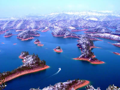 千島湖,是一個美麗的湖 。湖中那1078個島嶼,姿態(tài)各異,風(fēng)姿綽約。春游湖上,布滿山花的島嶼,是一個個天真爛漫的村姑;夏日游湖,人們多想在這碧波中逐浪暢游;秋山紅葉,使人想起"霜葉紅于二月花"的詩句,雪滿湖山,松挺山崖,又是一幅王維筆下的詩畫圖。