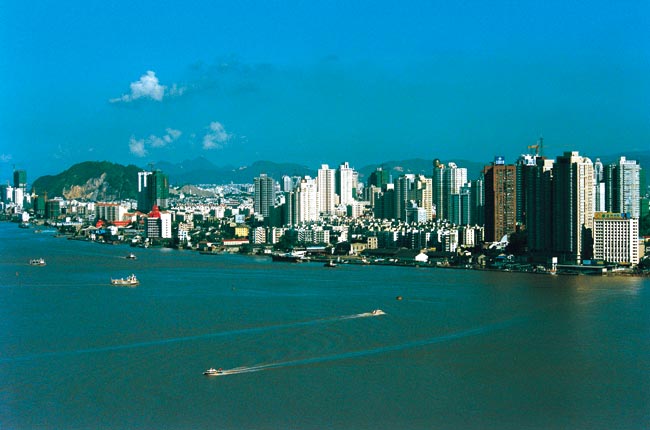 溫州市位于浙江省東南部,東瀕東海,南與福建省寧德市的福鼎、柘榮、壽寧三縣毗鄰,西和麗水市的縉云、青田、景寧畬族自治縣相接,北和東北與臺(tái)州市的仙居、黃巖、溫嶺、玉環(huán)四縣為界。地勢(shì)自西向東傾斜,西部屬浙南中山區(qū),迤東高度逐漸降低為丘陵地,東部是沿海平原。陸域面積12110平方千米,海域面積8649平方千米,海區(qū)負(fù)200米等深線以內(nèi)的面積6.67萬(wàn)平方千米。